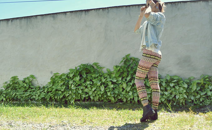|Bota de brechó: R$3,00| |Calça que imita camurça (comprei ela na rua, tipo uma feirinha): R$35,00| |Blusa A Colorida: R$15,00| |Jaqueta Jeans de brechó: R$4,00| |Bolsa de Franja: ganhei de presente da minha mãe|